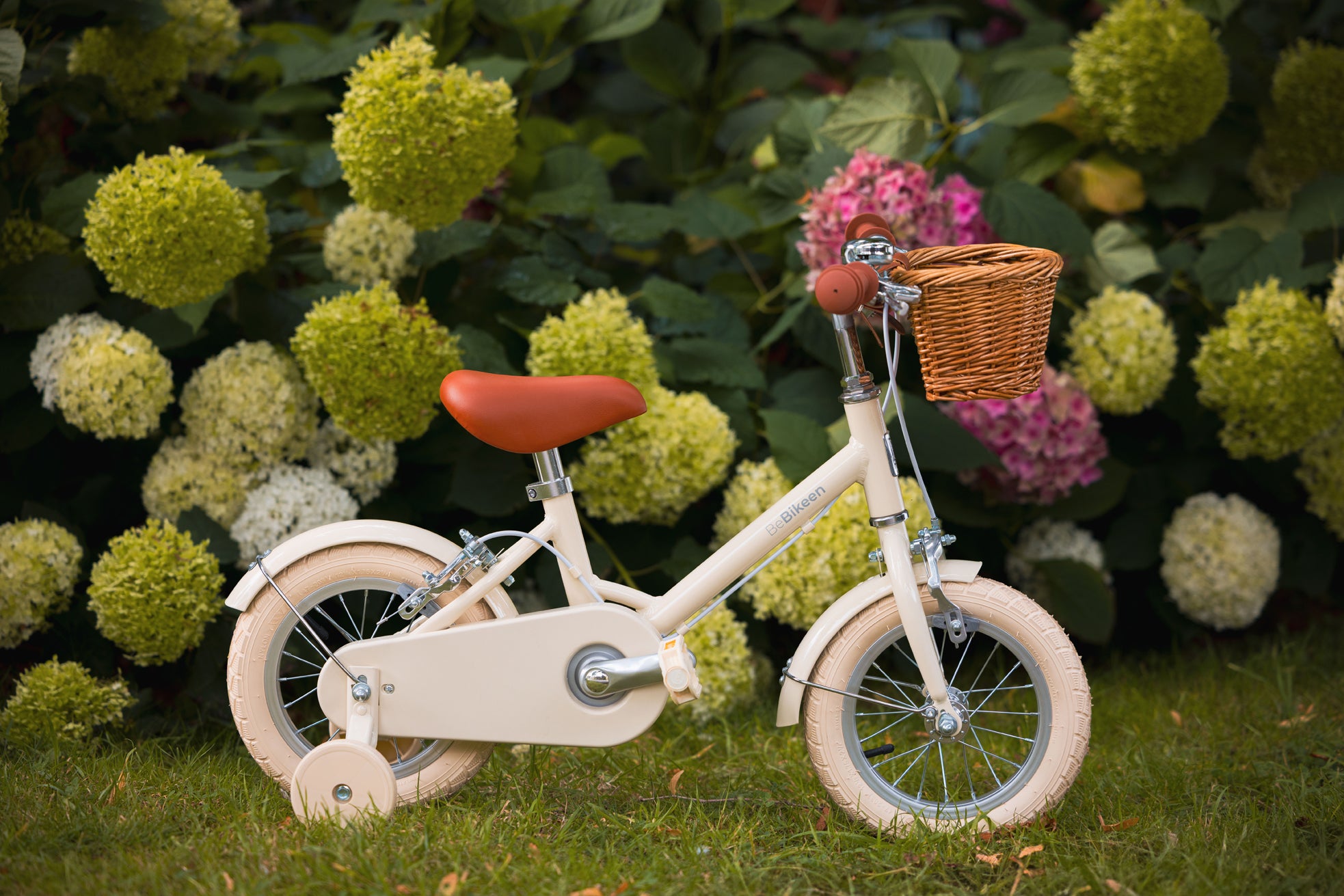 In zijn crèmekleur met tijdloze charme combineert deze 12-inch kinderfiets elegantie, lichtheid en veiligheid om kinderen van 2 tot 4 jaar te begeleiden bij hun allereerste ritjes, met stijl en vertrouwen.